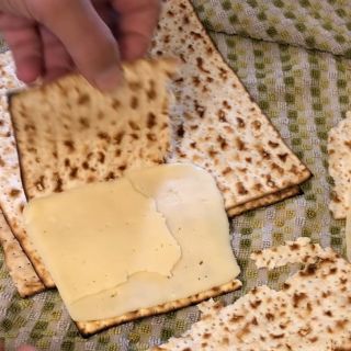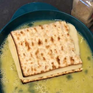 So basically, what we do is the matzah version of shallow-fried grilled cheese meeting an omelet. Yes, we add cheese to the traditional matzah and egg. And here’s how we do it: