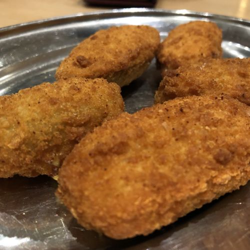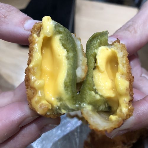 We sat there for a while (don’t do it), so we ended up ordering some Cheddar Poppers (3.9€) – deep fried battered grilled jalapenos filled with cheddar cheese that were exactly what you would expect them to be. But be careful – they’re hot! Not so spicy though.