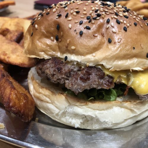 From the outside, it looks exactly like any other cheap burger joint in Berlin, but it is actually one of the best burgers I had in the city. They have a big selection of toppings which are combined together to specific burgers, I went for just a plain cheeseburger, but my friends took a Gorgonzolaburger that came with bacon, gorgonzola cheese, and cheddar, a Brandenburger with caramelized onions, goat cheese, and jalapenos, and were very pleased with their choices. All of the burgers looked amazing. There was also a large selection of vegetarian and vegan burgers. Also, a nice choice of chicken burgers and some salat dishes as well.